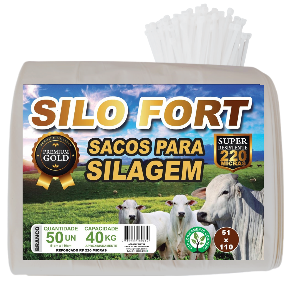 Os Sacos de Silagem BR 51x110 Reforçado Premium Gold da marca Silo Fort são a escolha ideal para quem busca qualidade e resistência na preservação de forragens. Com um comprimento de 1,1 m e uma largura de 51 cm, esses sacos são fabricados em polipropileno de alta durabilidade, espessura de 220 micras e proteção Anti, garantindo a proteção necessária contra fatores externos.